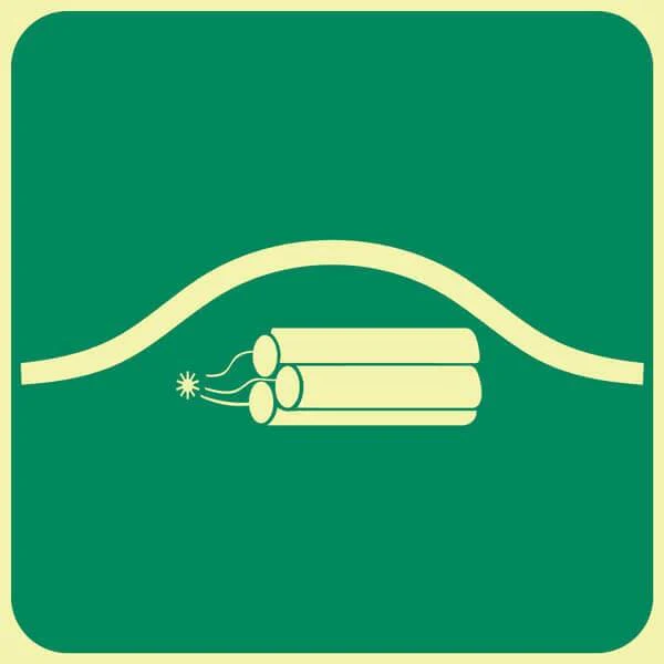 F34 – SABS Location Of Bomb Bag. Photoluminescent (Glow In The Dark) Sign. Signs are manufactured to order, delivery in 7-10 business days.