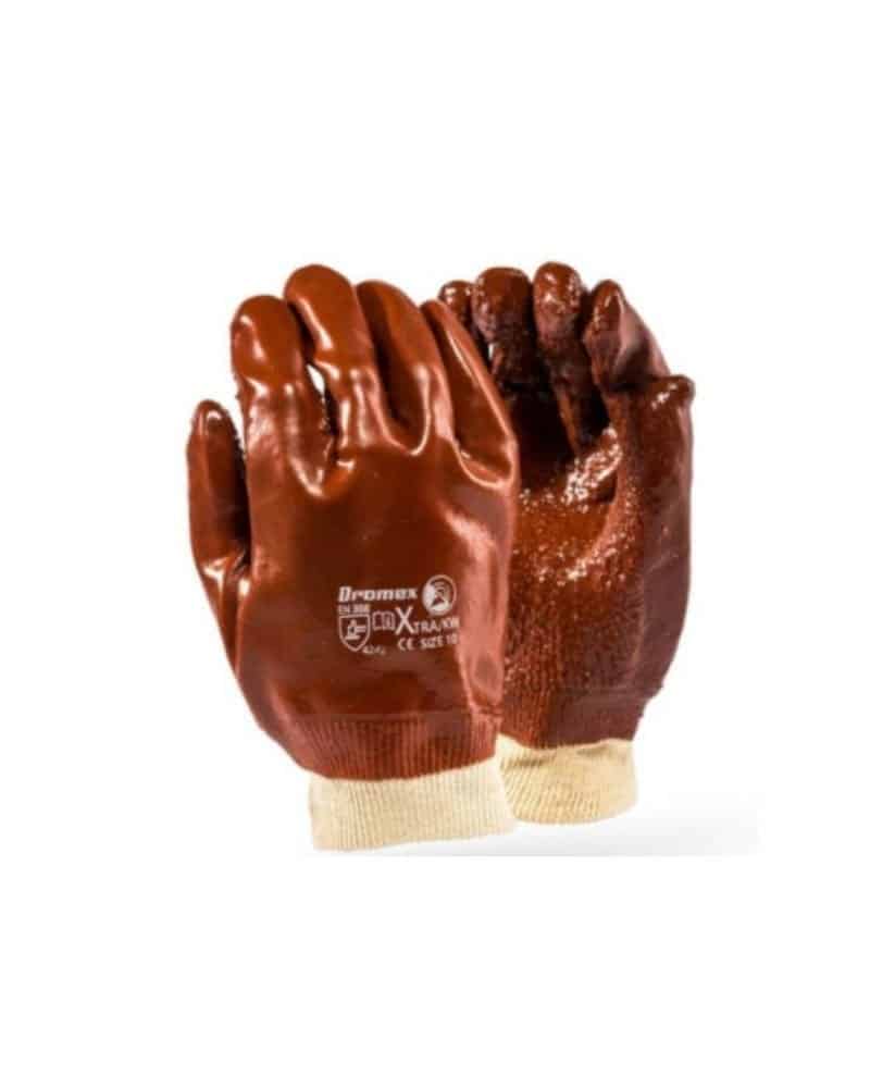 Experience the unparalleled benefits of the DROMEX Rough PVC Gloves with Knitted Wrist: