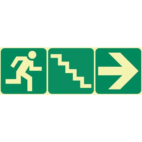 E16 – SABS Running Man, Stairs Down With Arrow Right. Photoluminescent (Glow In The Dark) Sign. Signs are manufactured to order, delivery in 7-10 business days.