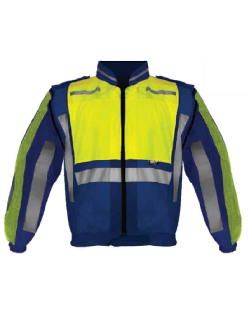 The High Visibility Blue and Lime Safety Long Sleeve Jacket is designed to provide maximum visibility and safety for workers in high-risk environments.