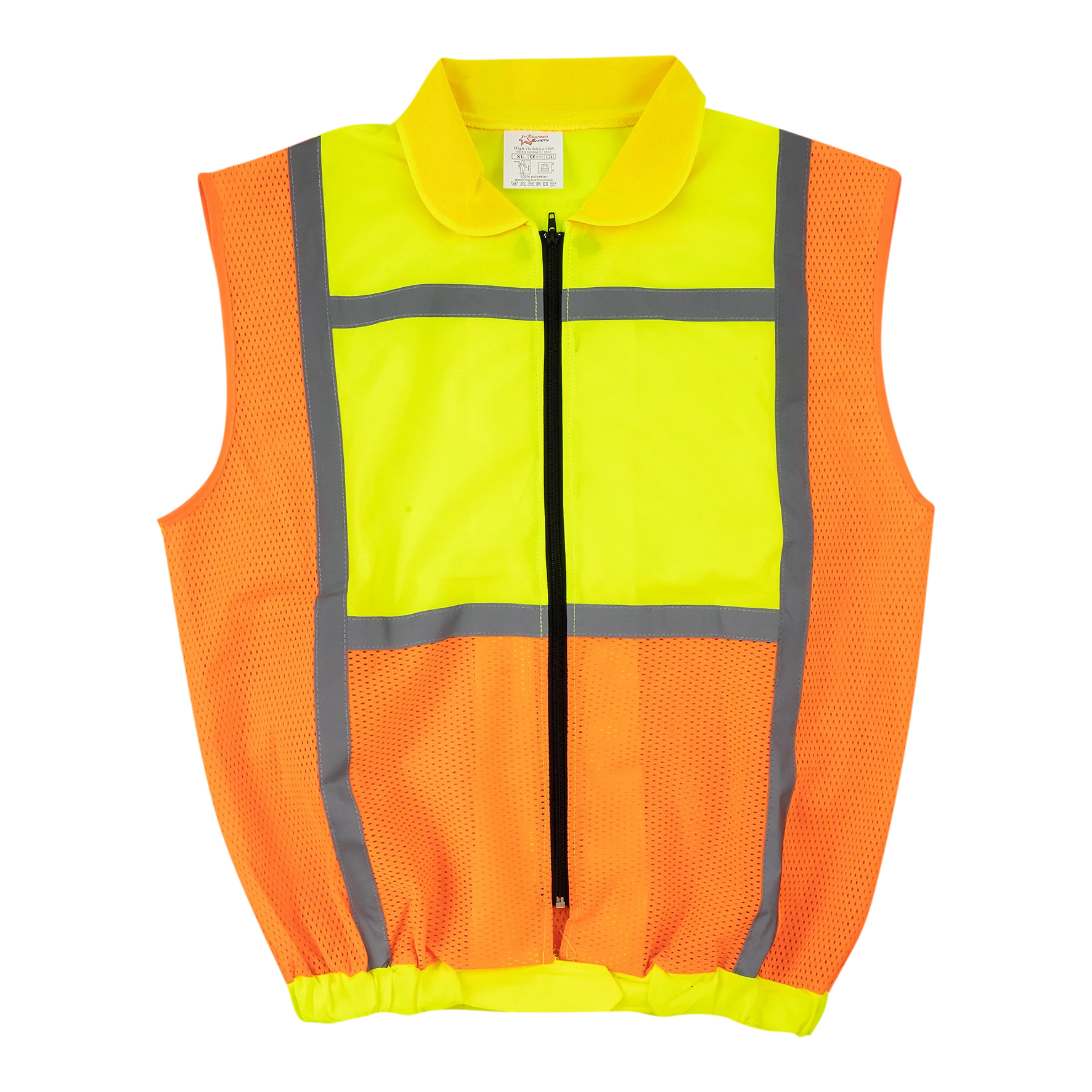 Enhance your safety with the Sleeveless Reflective Jacket in Lime & Orange. Perfect for outdoor work and emergency situations. Shop now!